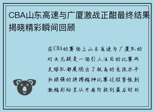 CBA山东高速与广厦激战正酣最终结果揭晓精彩瞬间回顾